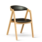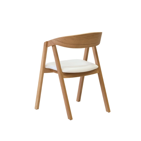 Křesílko s čalouněným sedákem i opěrkou. Materiál dub masiv, čalouněno eko kůží Sofia v bílé nebo černé barvě. Stohovatelné.
